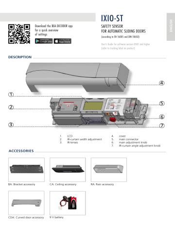Web user’s guide for product version 0204 and higher (refer to tracking label on product). Combined active infrared (ir) and microwave sensor (9 pages) accessories bea is40 installation manual. Opening & safety sensor for automatic sliding doors (4 pages).